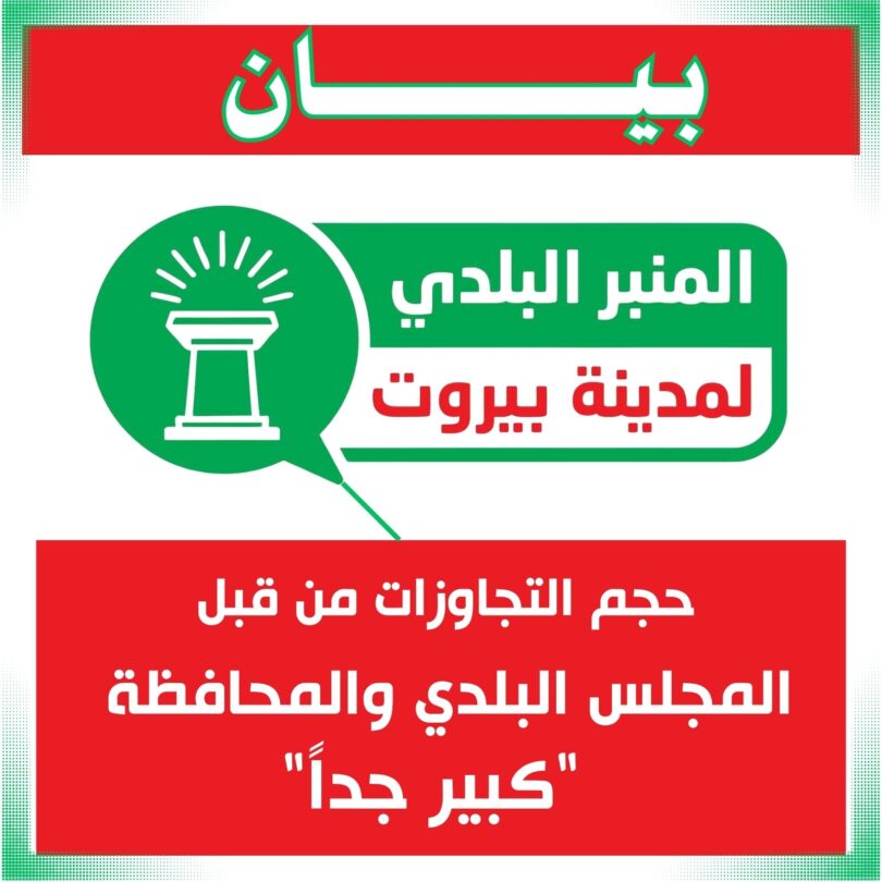 أصدر المنبر البلدي لمدينة بيروت بيانًا عقب اجتماعه الدوري المنعقد بتاريخ 14 نيسان 2026، تناول فيه جملة من الملفات المتعلقة بإدارة أملاك البلدية، ولا سيما الهبة المقدمة من مجلس بلدية بيروت إلى جامع البسطة، والتي تمثلت بعقار مملوك للبلدية، وما رافقها من إشكالات.
