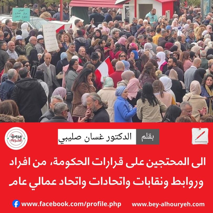 الى المحتجين على قرارات الحكومة، من افراد وروابط ونقابات واتحادات واتحاد عمالي عام