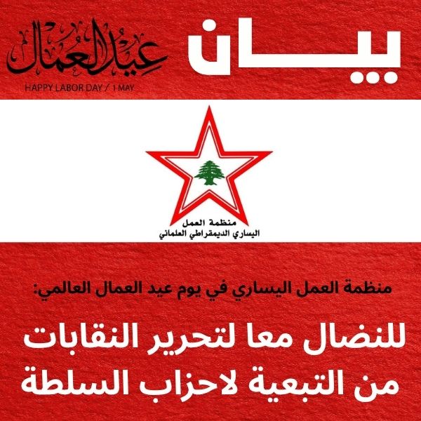 لمناسبة  عيد العمال العالمي في الأول من أيار عام 2026 أصدر المكتب التنفيذي لمنظمة العمل اليساري الديمقراطي العلماني البيان الآتي نصه: