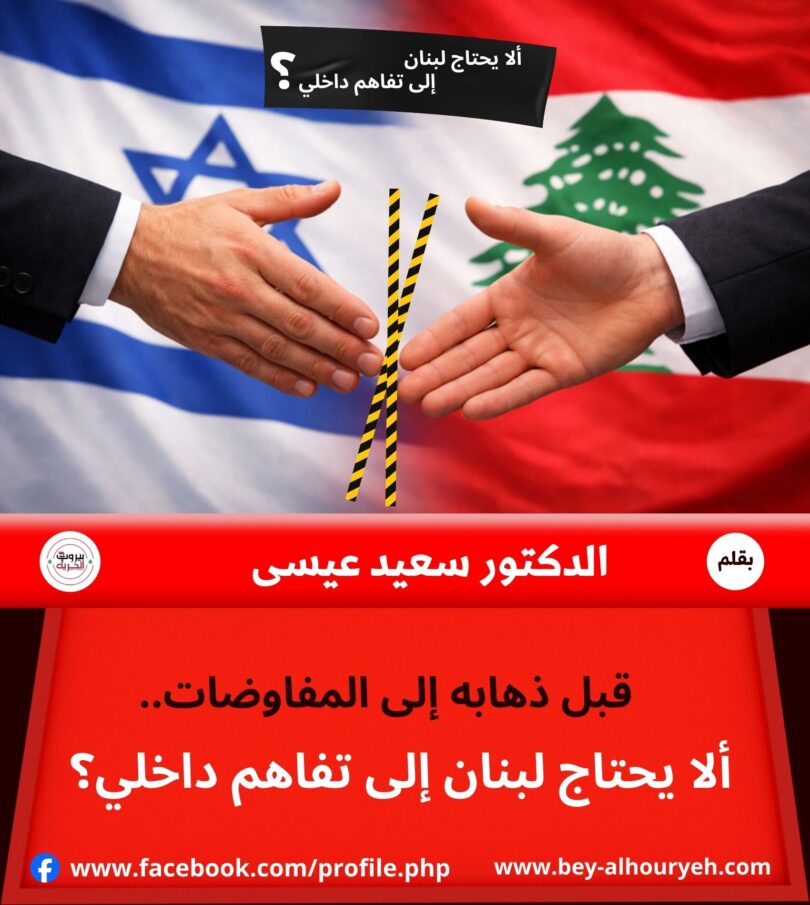 في لبنان، لا توجد مفاوضات خارجية خالصة. فكل تفاوض مع إسرائيل يتحول، بحكم طبيعة النظام والانقسام المزمن حول السلاح والسيادة والقرار الوطني، إلى امتحان داخلي لمعنى الدولة نفسها: من يُقرّر؟ ومن يفاوض؟ ومن يضمن التنفيذ؟ ولهذا، فإن النقاش الدائر اليوم لا ينبغي أن يُختصر بالسؤال عمّا إذا كانت الحكومة قد قررت الذهاب إلى التفاوض، بل يجب أن يتركز على السؤال الأهم: هل يملك لبنان حدًا أدنى كافيًا من التفاهم الداخلي يسمح له بالتفاوض من موقع دولة، لا من موقع سلطة تواجه نصف بلدها؟