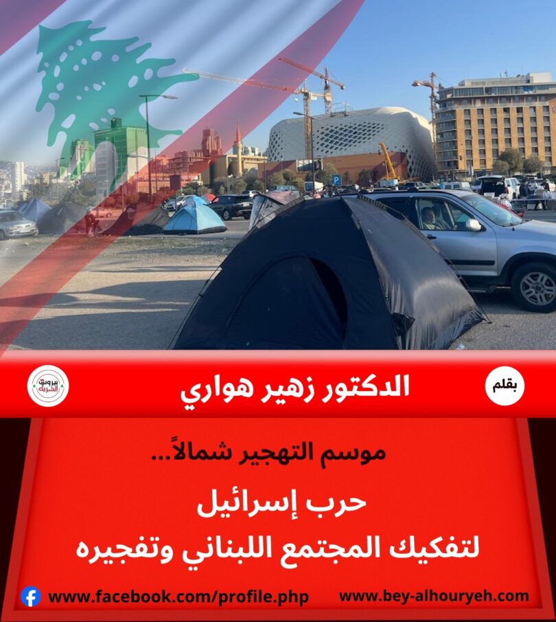 هذا المناخ تعمل إسرائيل على دفعه نحو حدوده القصوى من خلال موجات التهجير التي تطلقها تباعاً. بداية بالشريط الحدودي، ثم جنوب نهر الليطاني، ثم شماله ، ثم جنوب نهر الزهراني ثم شماله، فضلاً عن البقاع الغربي و..