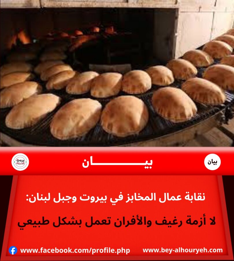 وقال في بيان: “في ظل الظروف الراهنة والاوضاع الاجتماعية والاقتصادية ومتابعة أوضاع العمال في المهنة وخاصة بعد الأوضاع الصعبة التي يعانونها من تهجير ونزوح واقفال العديد من المؤسسات والمحال الصناعية والتجارية والمخابز والافران بسبب العدوان المستمر والمتصاعد وتهجير ونزوح عمال المهنة وعدم ايلاء قضاياهم ومصيرهم اي اهتمام، وفي غياب كلي للوزرات المعنية. ولان رغيف الخبز حق مقدس لجميع المواطنين وأيضا حقوق العمال مقدسة، نطمئن الجميع أن لا أزمة خبز في البلاد، وان ما حصل بالأمس في مدينة صيدا من فقدان الخبز سببه عطلة العيد واستضافة أهلنا من الجنوب بسبب الحرب، واليوم تعمل الافران بشكل طبيعي والخبز متوفر في الافران والمحال التجارية”.